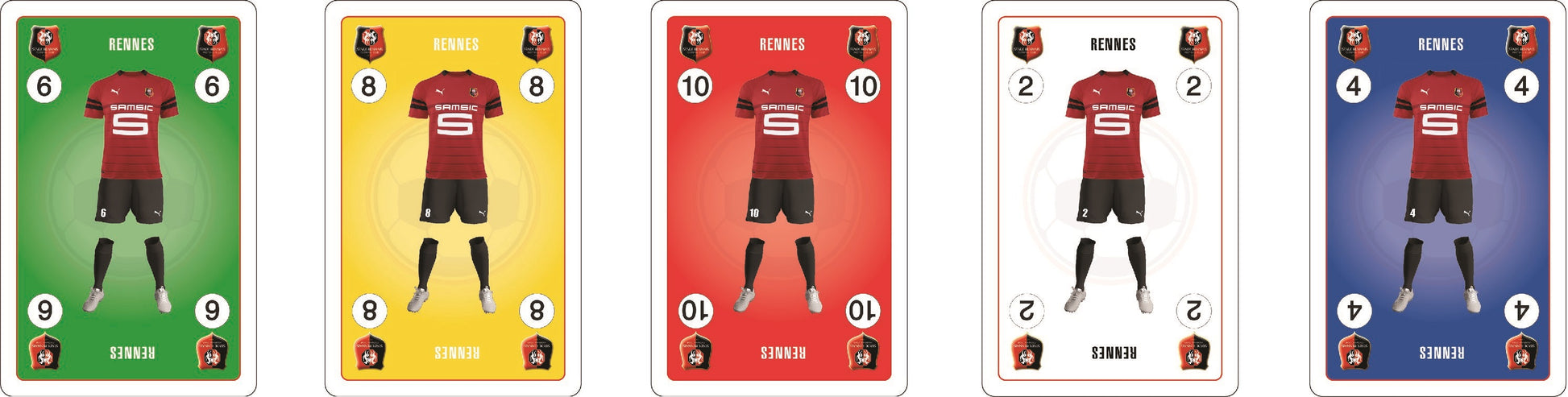 Chaque joueur choisit une équipe parmi 10 pays. Le premier qui se débarrasse de ses cartes gagne le match. Jouez la même équipe, la même couleur ou le même numéro. Collectez vos joueurs et utilisez les cartes spéciales.